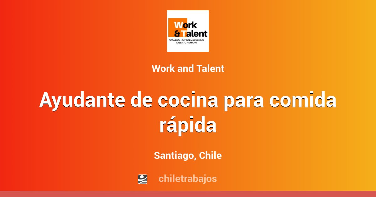 Trabajo Ayudante de cocina para comida rápida - Santiago ... from www.chiletrabajos.cl Busco trabajo de cocinero o ayudante de cocina. Únete gratis para promocionar tu perfil, relacionarte o encontrar empleo. Hola shawarma time soy un español de 33 años con experiencia de ayudante de cocina,no se si le interesara, intento mandar c.v a su correo pero me da error. Trabajar como ayudante en pizzería, realizando tareas en cocina, cortar verduras, embutidos, elaborar masa, estirar masa, montar pizzas, hornear pizzas, etc. Busco trabajo de ayudante de cocina y parrillero y jefe de cocina y bachero tengo experiencia y referencia. 281 ofertas de trabajo de ayudante este mes de diciembre 2020 en acciontrabajo, la red de profesionales y empleos de ayudante. Debe poseer conocimientos en cocina o en. Quieres trabajar en hosteleria y turismo en 2020.